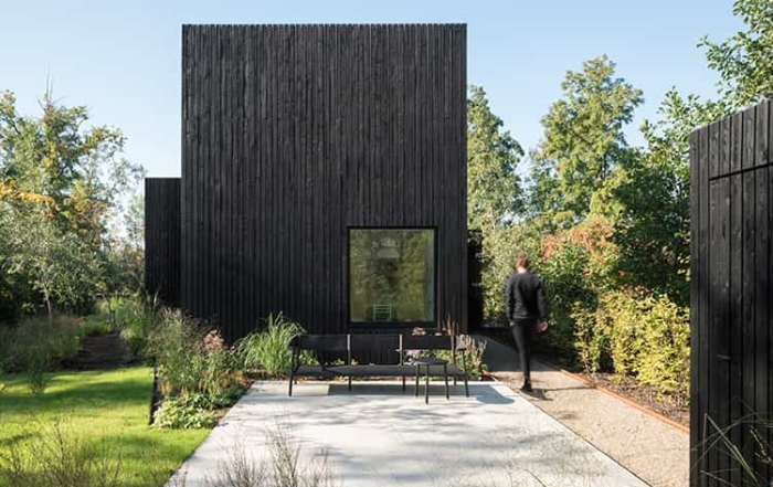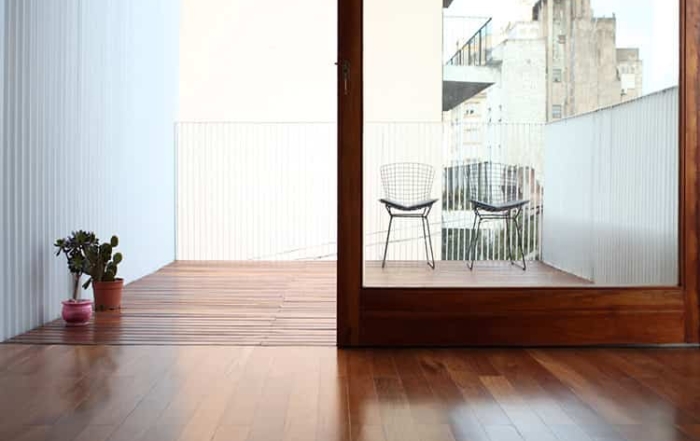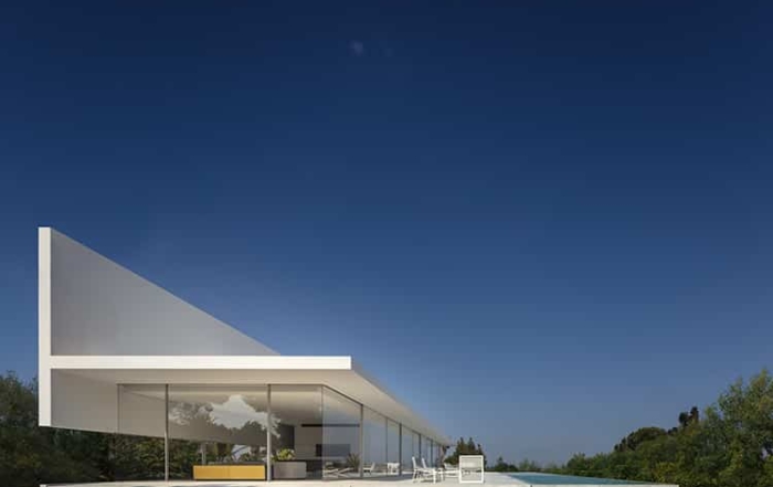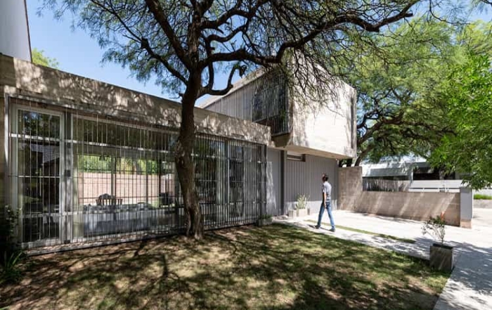 En las afueras de la ciudad de Córdoba, implantada en un lote con pendiente descendente orientada al noroeste, la vivienda se abre hacia las Sierras Chicas. La premisa fundamental del proyecto: lograr un plano horizontal interviniendo lo menos posible en la topografía natural de la ladera.