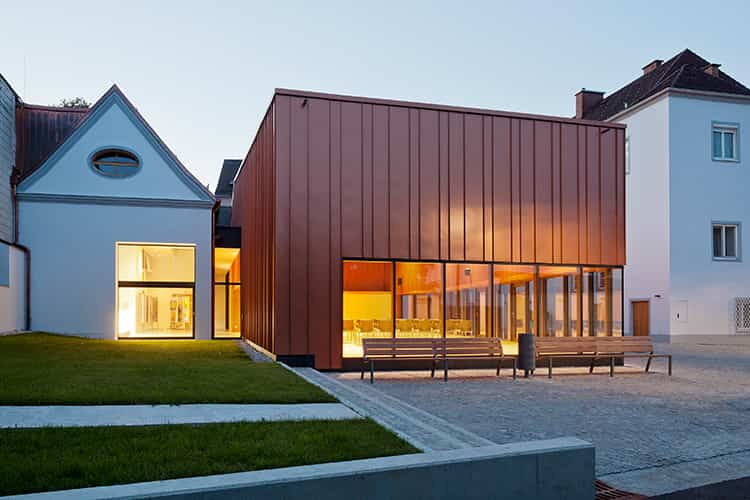 Las instalaciones municipales para eventos de Lambach se ampliaron mediante la adición de una sala de reuniones con habitaciones contiguas.
