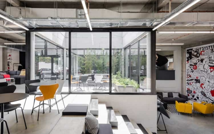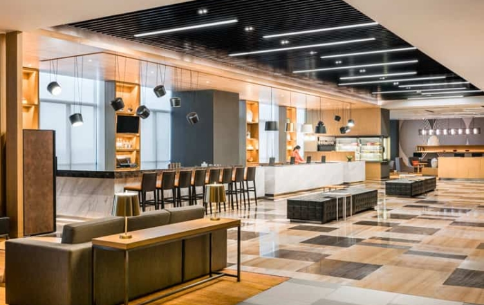 Una rótula entre la ciudad de Barcelona y el Hotel Kimpton Vividora: un espacio activo con una larga fachada hacia la calle, que invita a huéspedes y locales a entrar e interactuar.