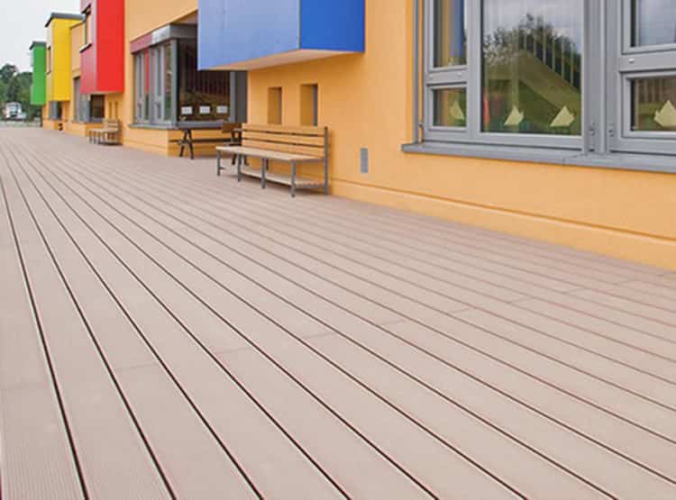 Ciudad: Böheimkirchen, Austria Proyecto: Terraza exterior Año: 2010 Instalación de RELAZZO (230 m2) en el exterior de una guardería. Producto REHAU instalado: RELAZZO – ambra, estriado