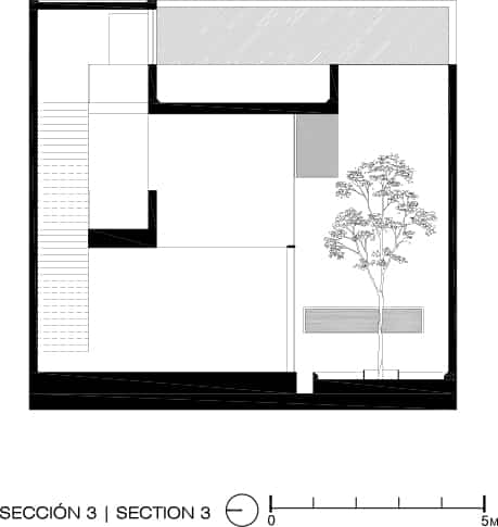 En la parte intermedia del terreno, se coloca un patio, que se convertirá en el corazón de la casa, articulando las áreas públicas y privadas, brindando iluminación y ventilación.