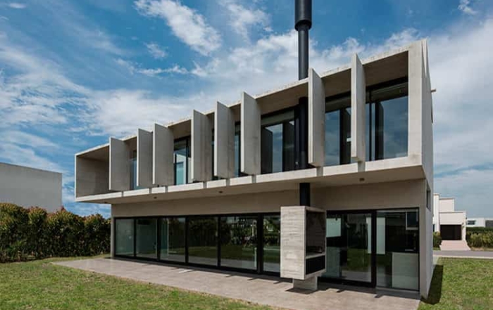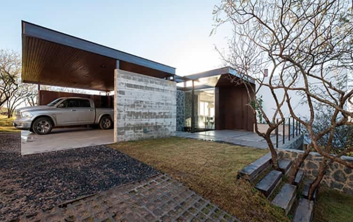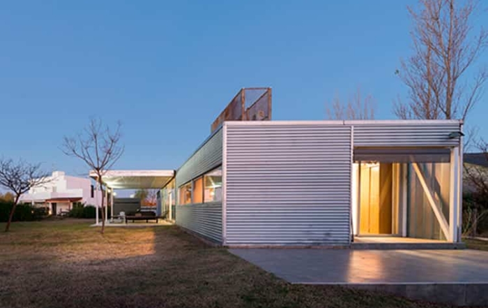 Inspirada en la experiencia doméstica californiana de la década del 50, esta casa se resuelve mediante un sistema modular que sirve de envolvente.