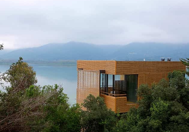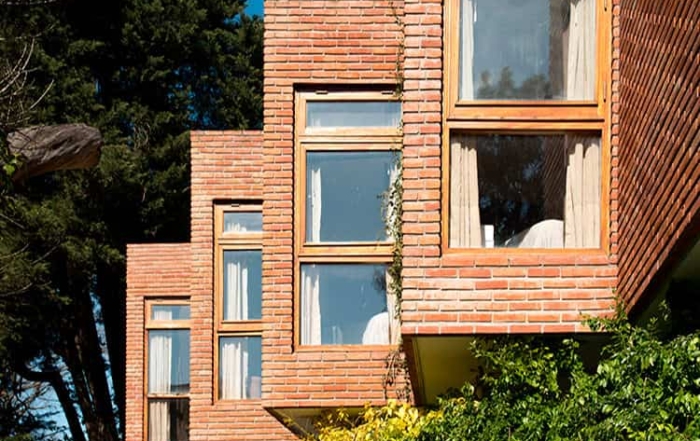 Inspirada por el paisaje serrano, la casa se establece entre árboles nativos de una manera sencilla y dialoga con la vegetación y la topografía del lugar.
