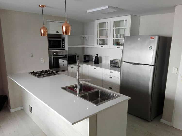 Todos nuestros gabinetes están realizados en melamina 18 mm. sobre MDF y totalmente recubierto con tapacantos de ABS 0,45 mm. Lo que les otorga una mayor vida útil y un mayor nivel de terminaciones.