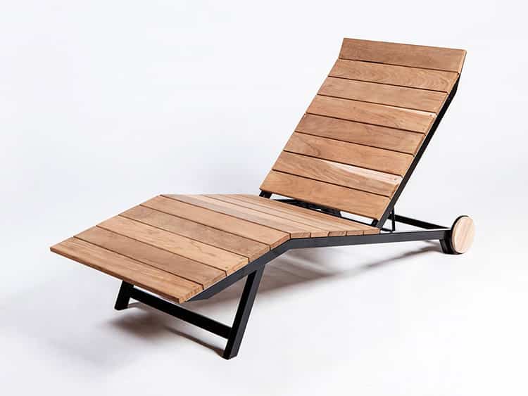 Estructura de hierro pintado al horno. Revestimiento de Lapacho o Incienso. Respaldo reclinable con 3 posiciones. Totalmente apto para intemperie.